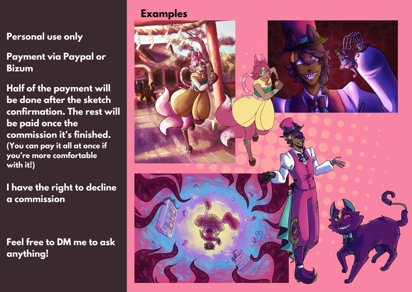 Commissions can also be made in my VGen profile.For any question or charge you can contact me via: